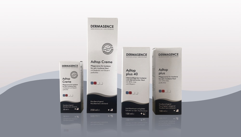 Die Adtop Pflegeserie beinhaltet eine Creme für trockne Haut, eine Intensivpflege für sehr trockene Haut sowie eine Pflegecreme mit 40% Urea. Diese befreit zusätzlich von Verhornung oder Verhärtungen und versorgt die Haut mit Feuchtigkeit.